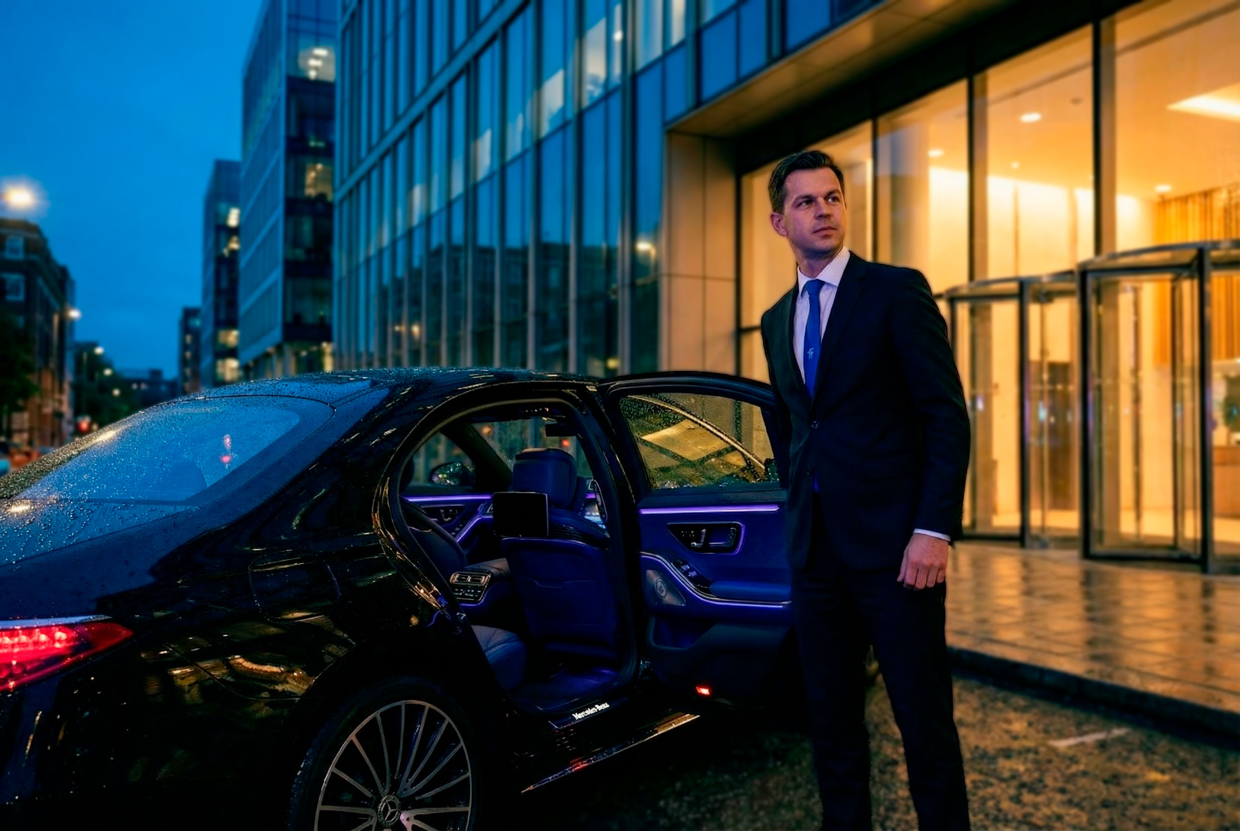 Uw chauffeur meldt zich discreet bij de entree of valet, zodat u niet buiten hoeft te wachten.